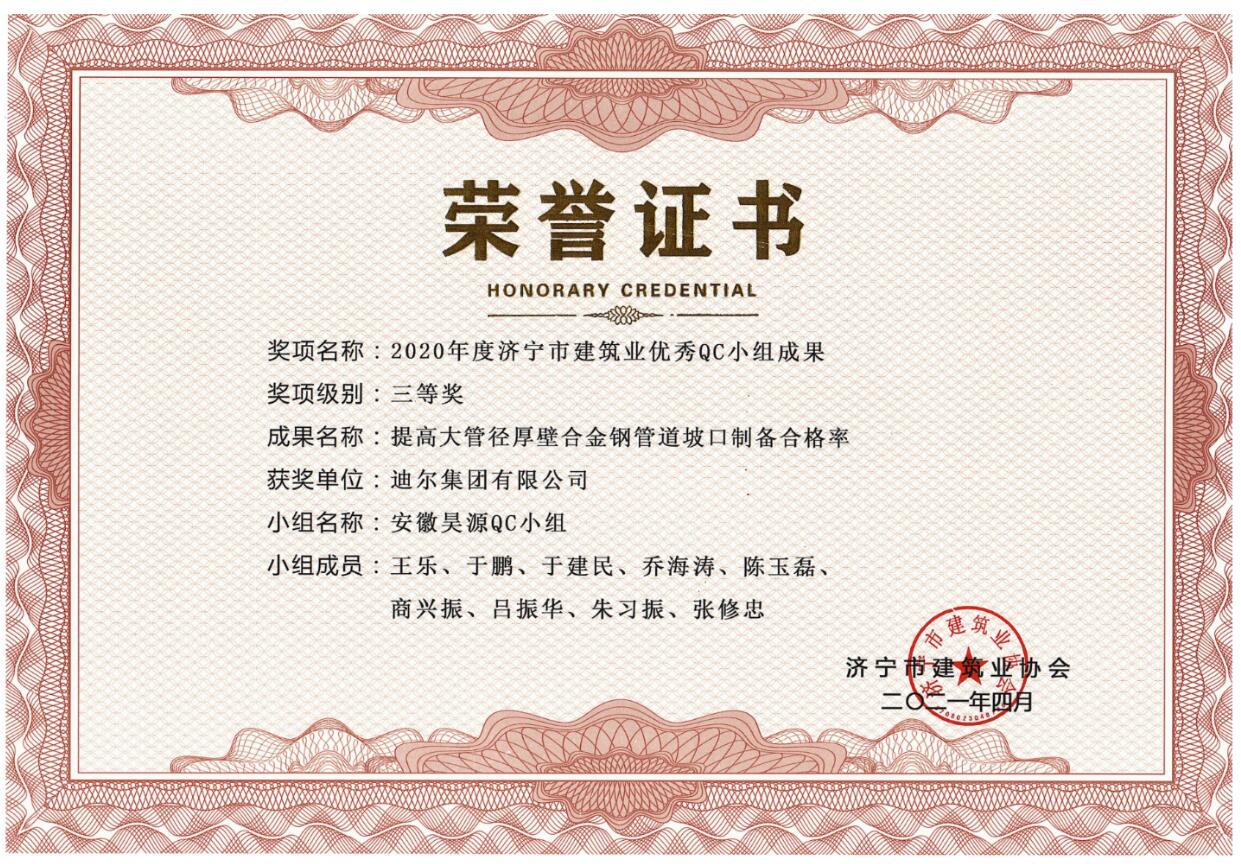 下一篇:2020年公司榮獲濟(jì)寧市建筑業(yè)優(yōu)秀QC小組活動(dòng)成果三等獎(jiǎng)