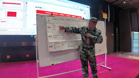接下來,王克導(dǎo)師結(jié)合分析知名企業(yè)成功案例,提綱挈領(lǐng),拋磚引玉,對學(xué)員們的認(rèn)知、心智以開悟啟迪,各個連隊(duì)針對研討營提出的“形勢研判”“價值定位”“業(yè)務(wù)鋪排”“模式設(shè)計(jì)”“系統(tǒng)行動”“資能配置”“企業(yè)管控”等七大課題通過研討集思廣益,用心作業(yè),然后形成報(bào)告,進(jìn)行展示,以豐富多彩的形式展開競賽。每位學(xué)員在研討中不再墨守成規(guī)、因循守舊,而是放開思路、創(chuàng)新思維,不斷突破自我認(rèn)知邊界,用全新的視角去看待問題,解決問題,同時與隊(duì)友密切配合、相互補(bǔ)充,最終依靠團(tuán)隊(duì)的力量,攻克一個接一個看似艱巨的課題。每一次研討都是一次思想碰撞,每一次碰撞都伴隨著一次思維重構(gòu)。尤其在文化活動——“鷹王重生”環(huán)節(jié),面對看似不可能完成的任務(wù),大家一次次克服畏難情緒,經(jīng)受住信念、毅力和體能的多重考驗(yàn),即使累得滿頭大汗、胳膊疼麻,也咬牙堅(jiān)持,自我鼓勁,不言放棄,可謂經(jīng)歷了一場身心的洗禮與覺醒。面臨生死抉擇,選擇生,就必須拋舊納新,自我蛻變,經(jīng)歷疼痛;企業(yè)重構(gòu)建歸根結(jié)底始于人的重構(gòu)建,始于個人的自我打破和蛻變;蛻變是艱難而痛苦的,但只有經(jīng)過蛻變的陣痛,個人、團(tuán)隊(duì)乃至企業(yè)才能獲得重生。