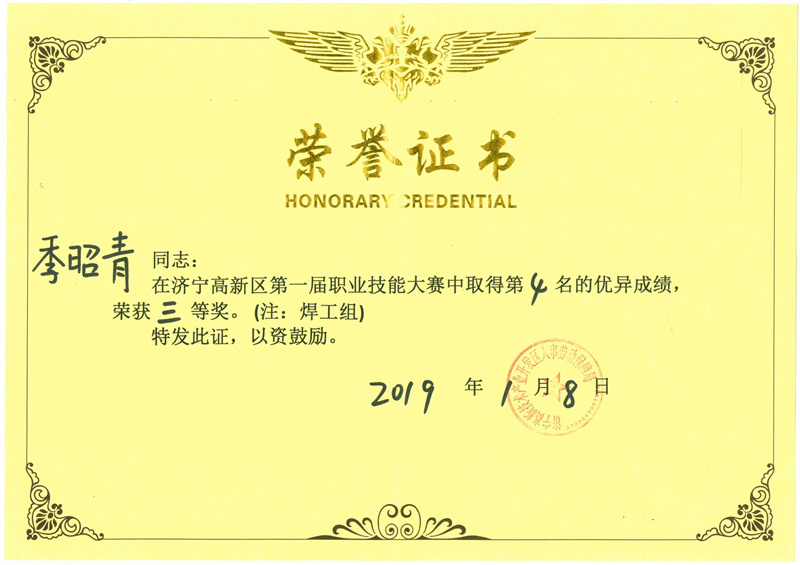 Certificate of honor