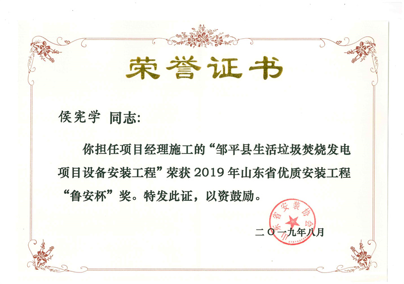 Certificate of honor
